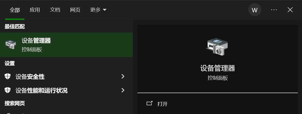 要打开 "设备管理器" 的方式有很多种,我更喜欢直接在系统的搜索栏中搜索一切: