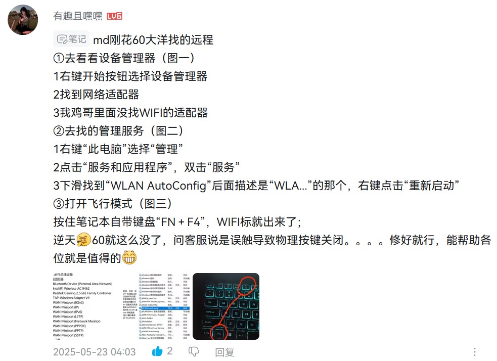 刚刷完系统发现无限网络无法使用,美美从劈里啪啦(bilibili)下载了一个驱动大礼包安装。除了无限网络偶尔抽风,重启一下就解决了之外,一切都是岁月静好的。