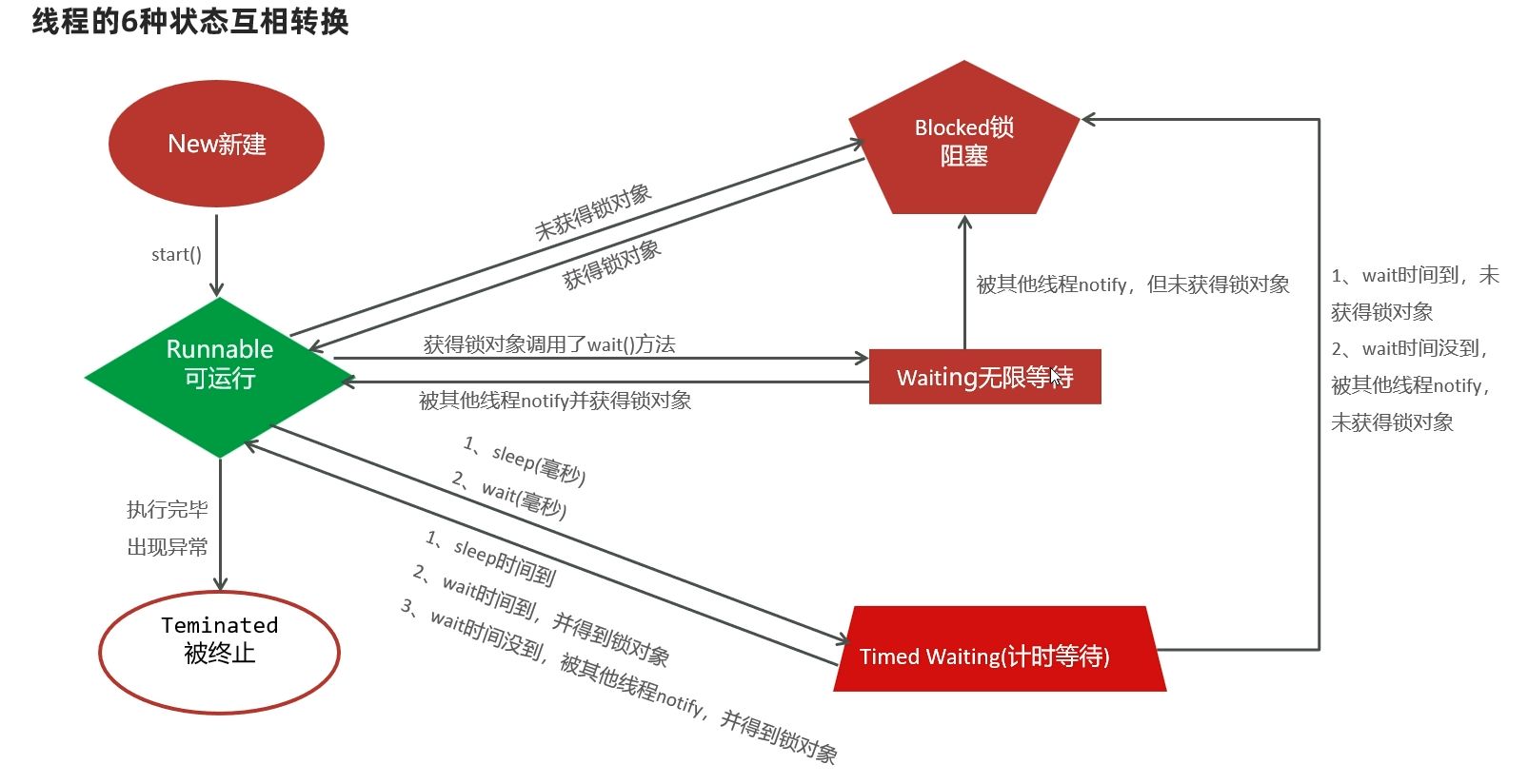 sleep()、join(timeout)。 - TERMINATED(终止):线程执行结束。