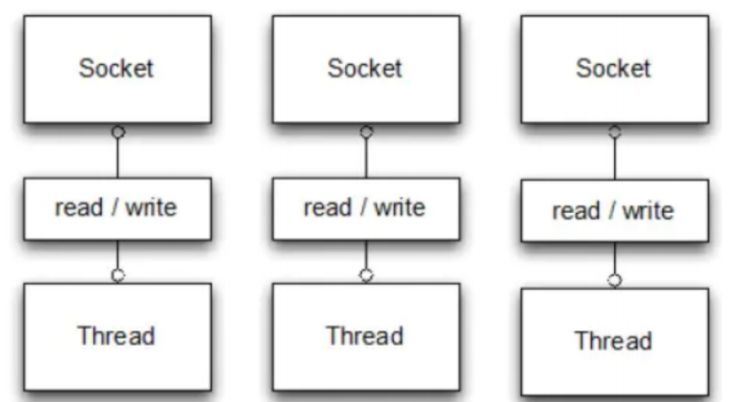 BIO = 每个连接占用一个线程,等着有数据;